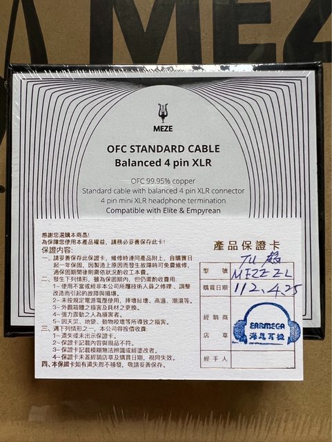 耳機&線材外箱,這次選的是2.5米4pin XLR原廠線