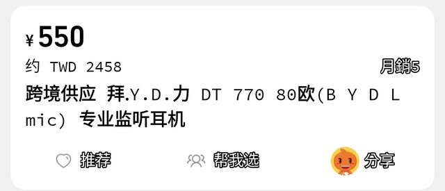 → maoding: 之前我看到淘寶上很便宜的dt770說法是 ,舊版包裝的沒假05/03 18:29