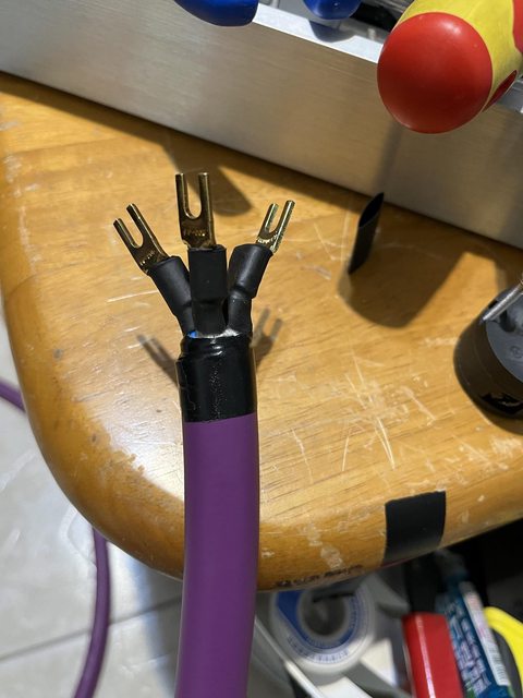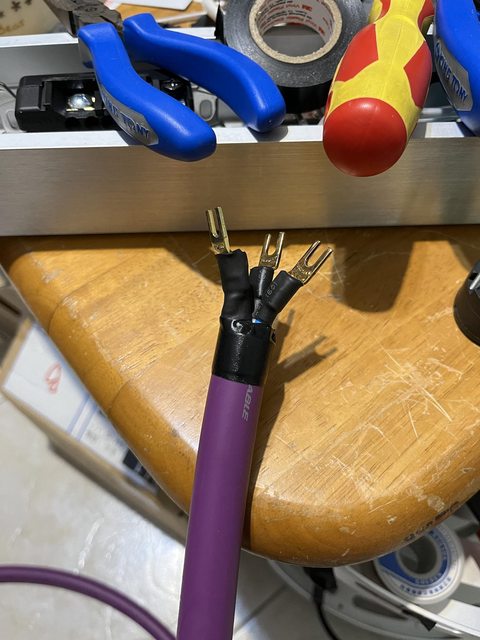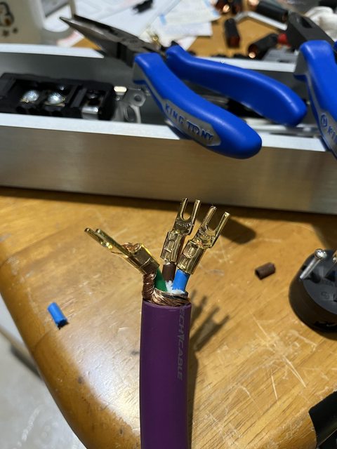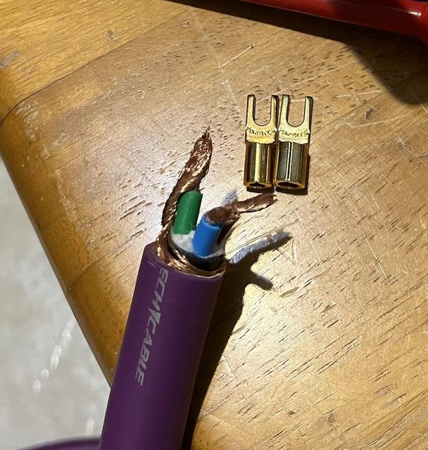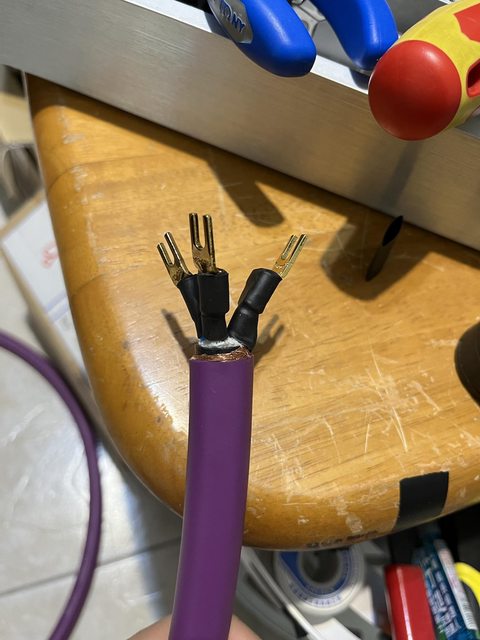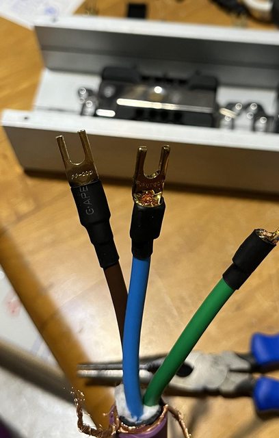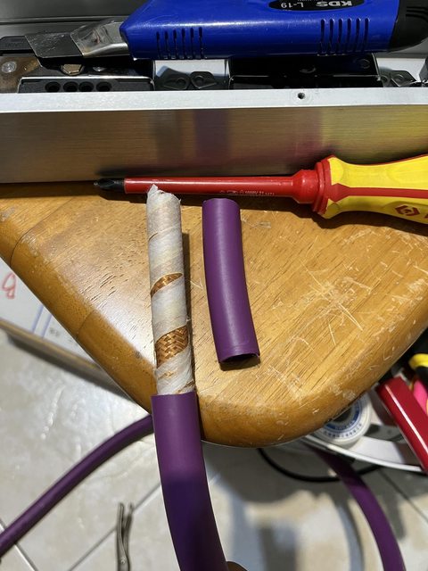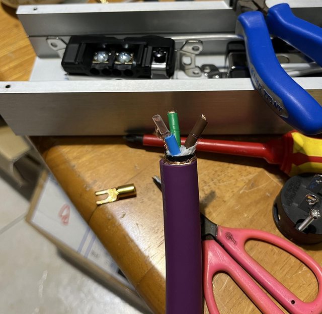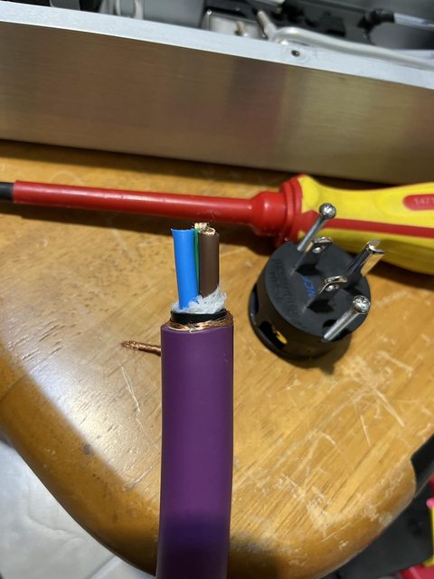 插頭的銅編織網順開後要跟插頭側的接地線接在一起,所以不要直接切掉