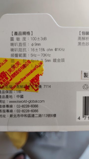 標題[情報] Kworld Hires規格福利品耳機99元(光南)