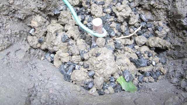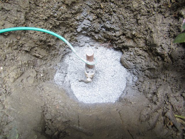 > gameguy 用專業機器挖洞,放進銅棒,縫隙塞電石顆粒,上面用柏油密封封好,蘇福
