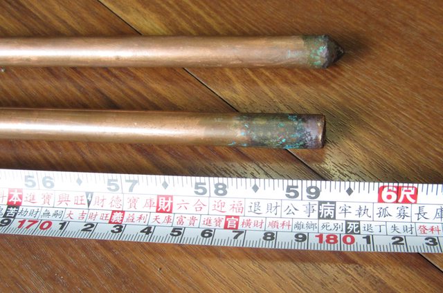 接地銅棒,一端是尖頭,另一端是平頭 (裡面其實是鋼鐵條)