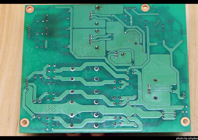 電源板背面,可以看到數位電輸入的SMD二極體下的PCB已經烤焦