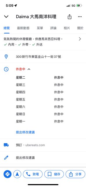 → choping : 剛傳訊給老闆娘他們休息至10/11(三)開始營業 oh y 10/04 13:01
