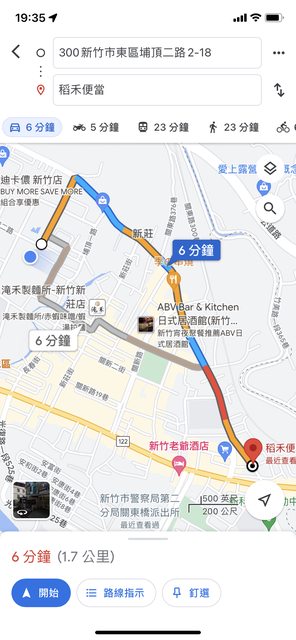 路程為:光復路一段108巷28號(稻荷便當)經過關東路上的7-11,然後在崇和路左轉到埔頂
