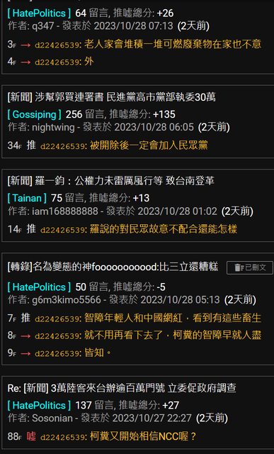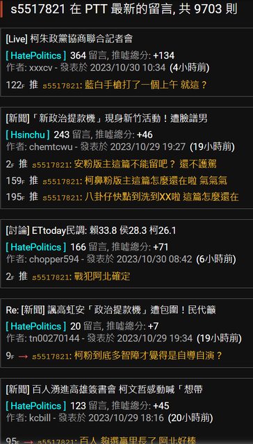 → soar : 部分帳號涉略的板那麼多,比較像是對政治議題發表己 10/31 00:18