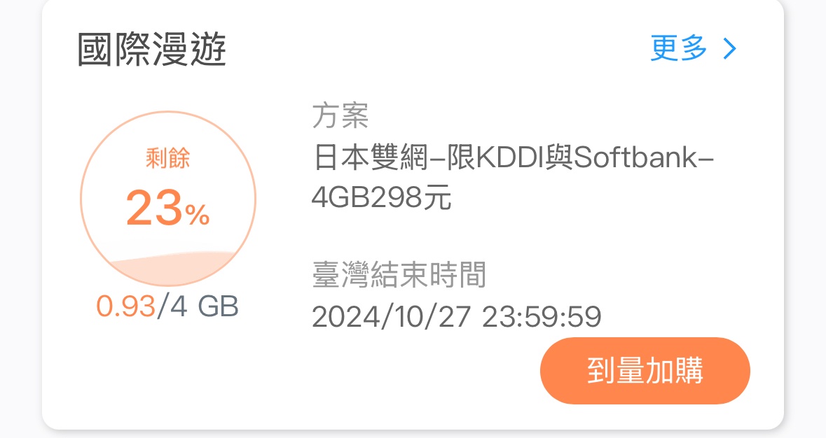→ Kakeron : 會提醒你,不過漫遊真的方便,不用換sim卡不用重開10/23 14:30