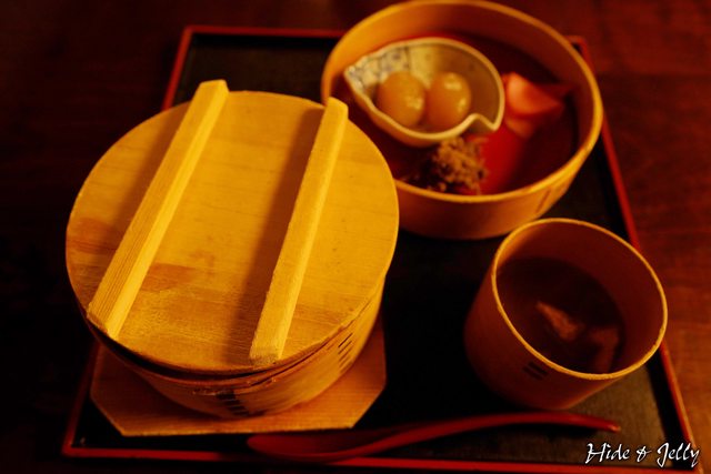 另一份我們點的是2,640円的「会津物語套餐」,這是一份小份的「五種輪箱飯」搭配会