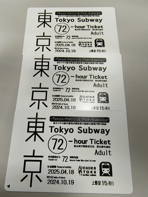 1. 讓售品項:(已售出)東京72小時地鐵乘車券3張(使用效期至2025/4/18)