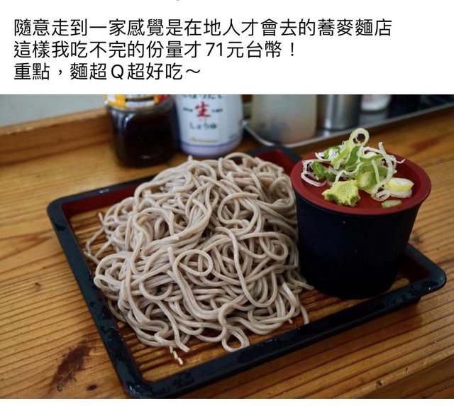 噓 ad21120903 : 真正好吃的蕎麥麵是不會Q的10/25 01:31