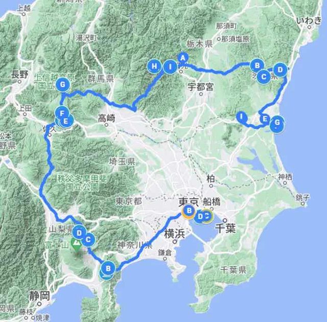 來到了關東,造訪了東京、千葉、神奈川、靜岡、山梨、長野、群馬、栃木及茨城共9個