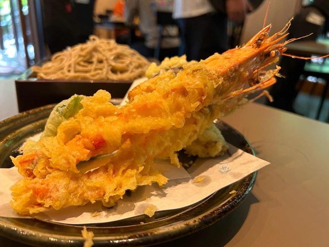 《川上庵》蕎麥麵不錯,但最強的是巨無霸炸蝦,鮮甜好吃沒吃會後悔
