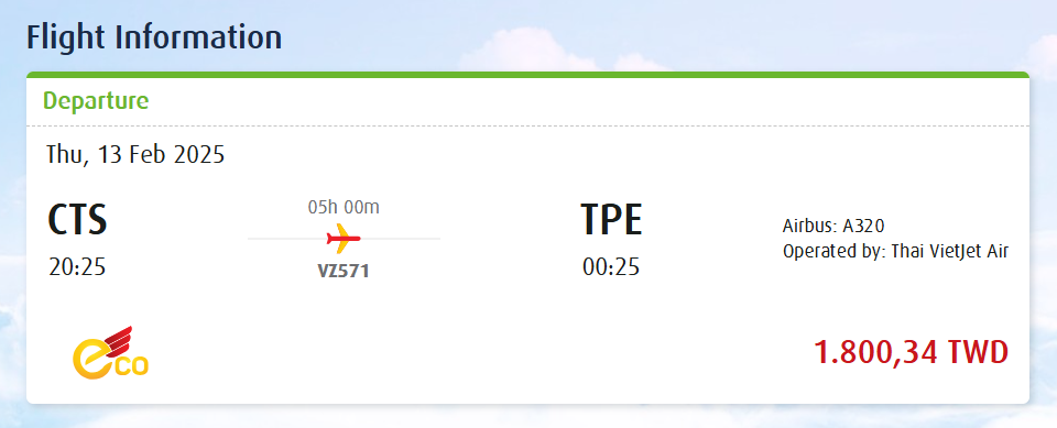 → JasonC1985 : 那札幌雪祭的單程含稅1800應該總可以了吧 10/28 17:04