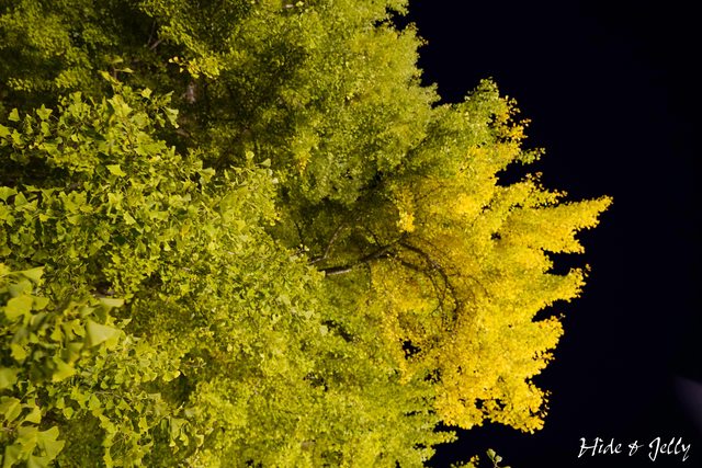 雖然是在綠轉黃的階段,但強力的燈光打下去,還是頗有閃閃發光的感覺啦...