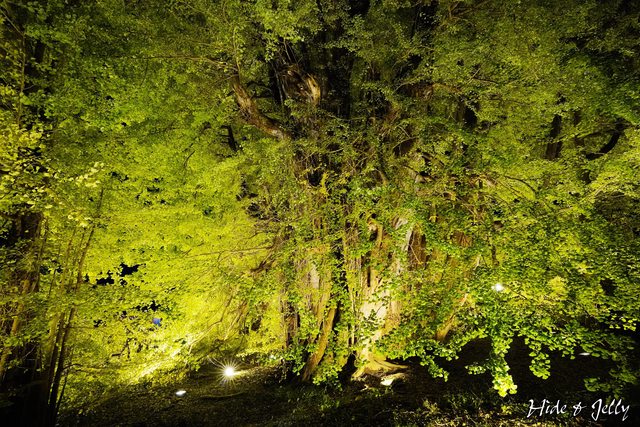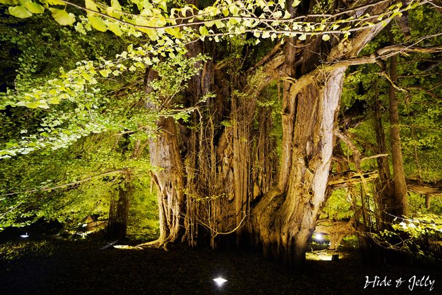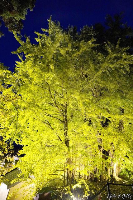 雖然這次沒能看到完全轉黃的大銀杏,但在夜間打燈的照耀下,還是能感受到祂的巨大與