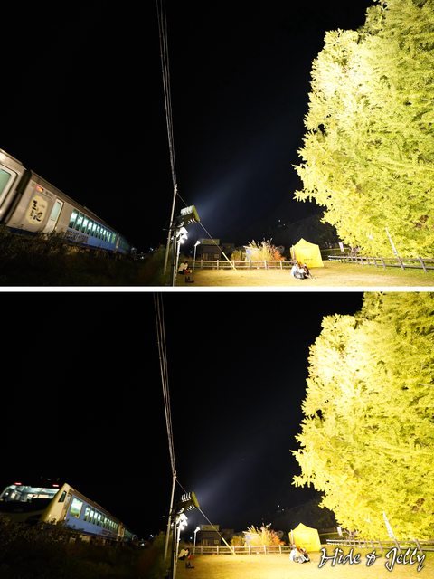 稍後通過大銀杏旁,時間抓好、角度喬好,還可以拍到列車"衝撞"大銀杏的畫面唷。XD