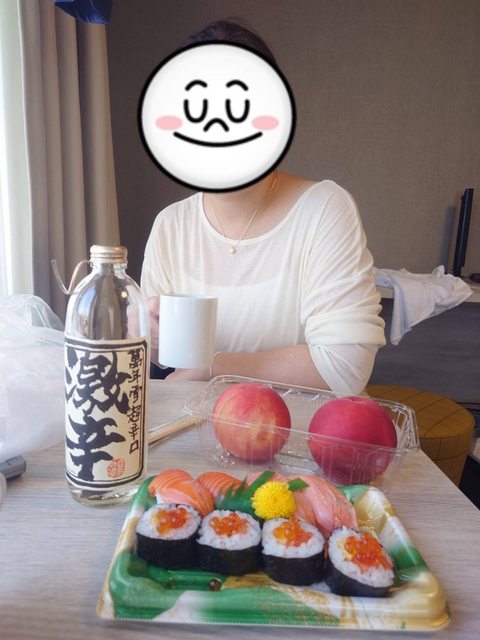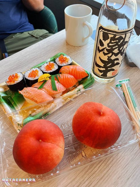 徒步40分鐘去倉敷aeon倒也不是一無所獲,買了岡山著名的桃子、打折的握壽司跟地酒回