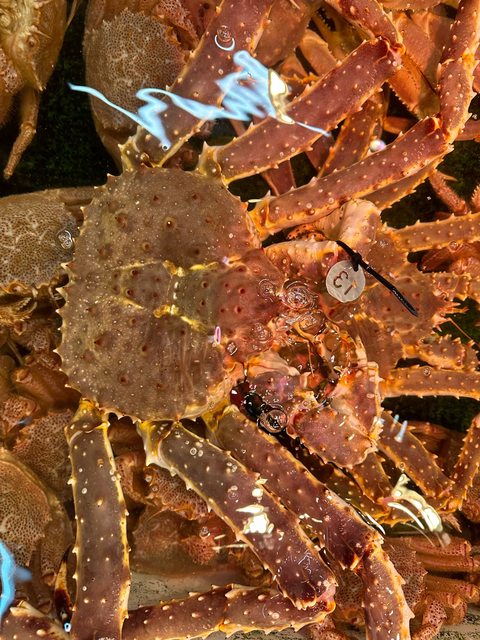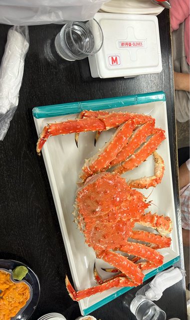 這天下大雨,衝進去選了一間看起來還行的買了隻帝王蟹,價格比場外市場便宜很多,同