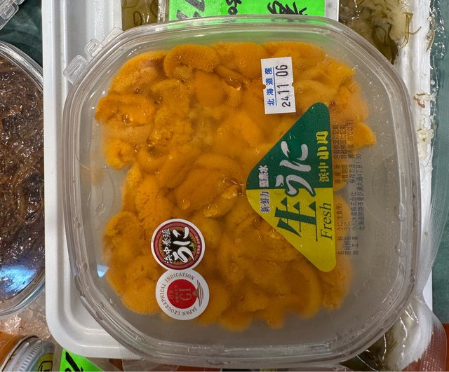 結帳了,還買一盒鹽水海膽,價格九千多,的確是比普通的五千多吃起來滑嫩,老闆還來