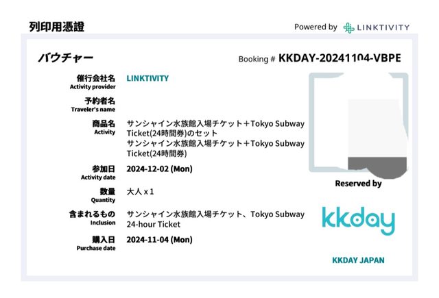 1. 讓售品項:12/2陽光水族館門票+24小時地鐵券*1