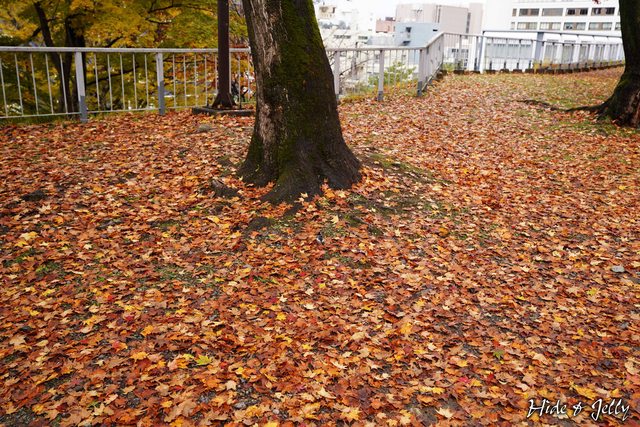 對比剛剛一整片冬眠櫻花樹,二之丸西側到處可見楓紅。