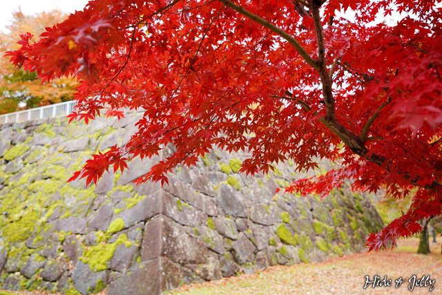 站在石垣邊,也可以在比較高的高度看到二之丸的楓紅。