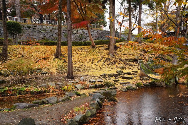 比較少看到水岸邊有銀杏樹的樣子,這邊可以滿足水岸與黃金地毯共舞的景色。