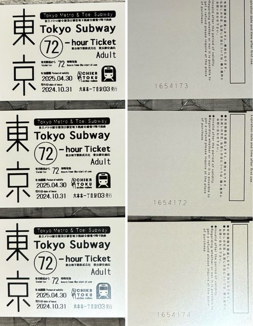 東京地鐵實體票72小時 3張