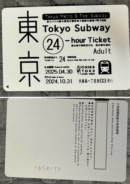 標題[讓售] 東京地鐵72小時、24小時實體票券