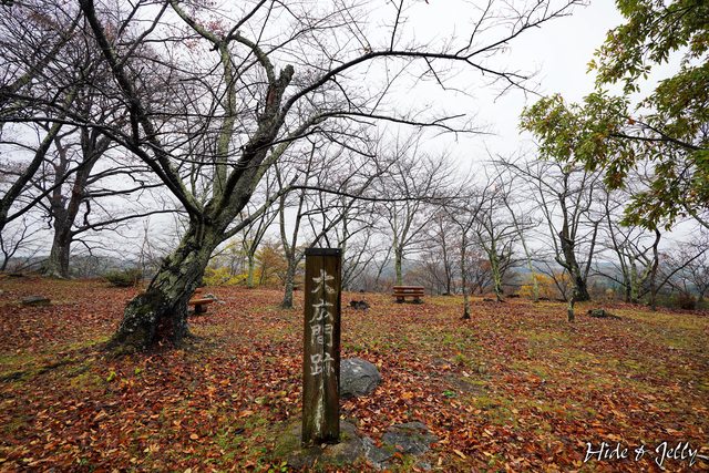 「搦手門跡」附近可以看到一些防禦措施的土壘,這個季節還有很多變葉木落葉鋪滿了地