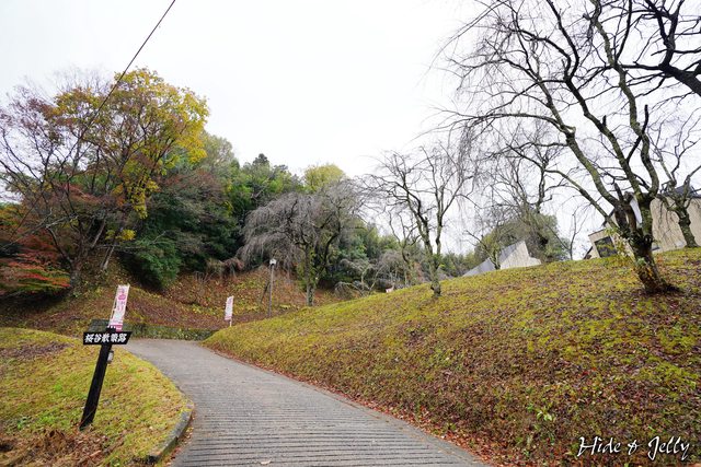 資料館與三春城的入口還有650公尺的距離,一旁的櫻谷散策路看起來有很多櫻花,不過