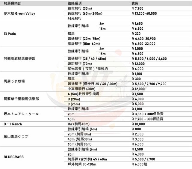 特別研究了一下關於阿蘇騎馬的資訊順便把週邊的選擇整理一下