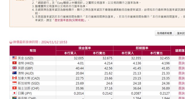 噓 wpd : (請查詢台灣銀行官方網站) 11/12 16:12