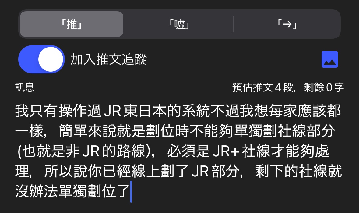 → onlelonely : 因為我已經劃了六段指定席,所以一定要在窗口劃位11/13 20:16