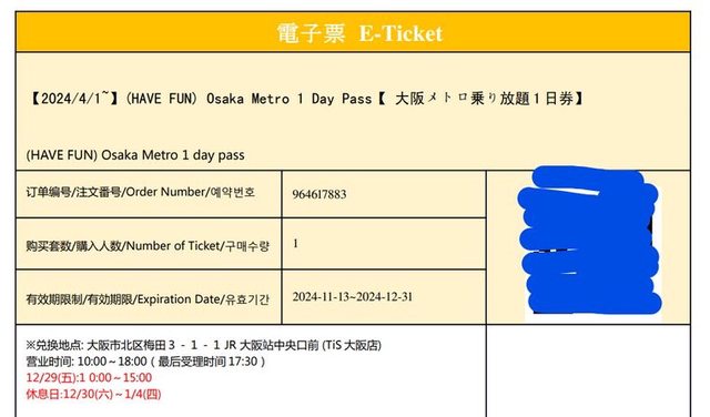 標題[讓售] 大阪地鐵一日券 4張