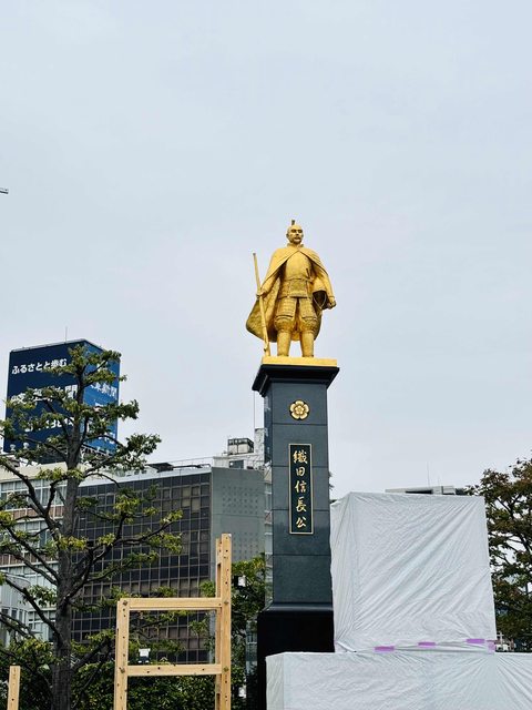 站外有個金碧輝煌的織田信長雕像