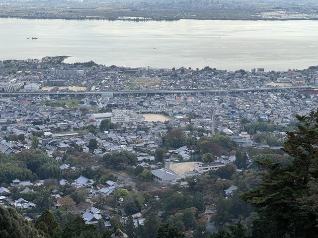 抵達山上的延曆寺車站,外面有個觀景台一樣能眺望琵琶湖,還能看見琵琶湖大橋