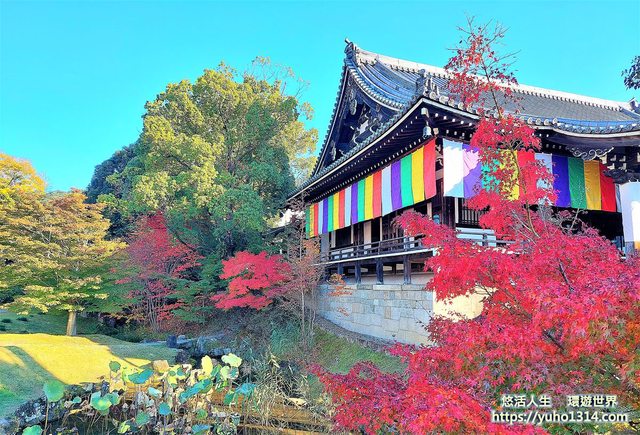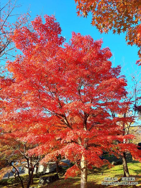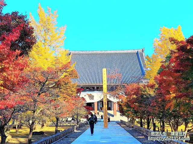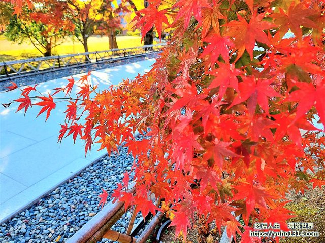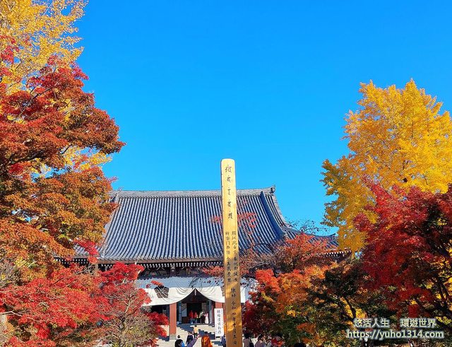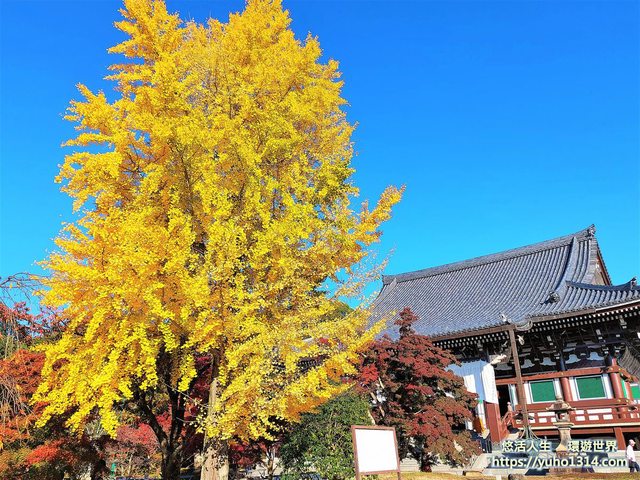 閒欣賞美麗的楓葉,此處火紅楓葉與金黃銀杏,搭配典雅寺廟閣樓,真的美到十分令
