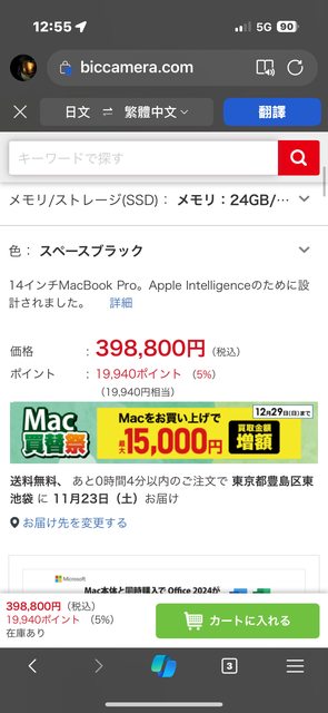 下週要去宮崎縣出差,其中有一天會到熊本市區,打算在Bic Camera買新的MacBook Pro 。