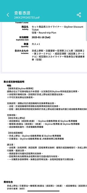 1. 讓售品項:東京 京成電鐵skyliner來回乘車券1張(使用效期至2025/1/18)