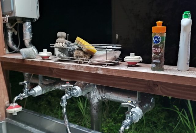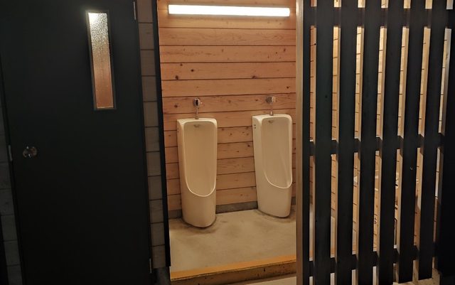 露營場地在湖邊,如果要上廁所或是盥洗餐具食材的話,就要到白根建物這,有提供免治
