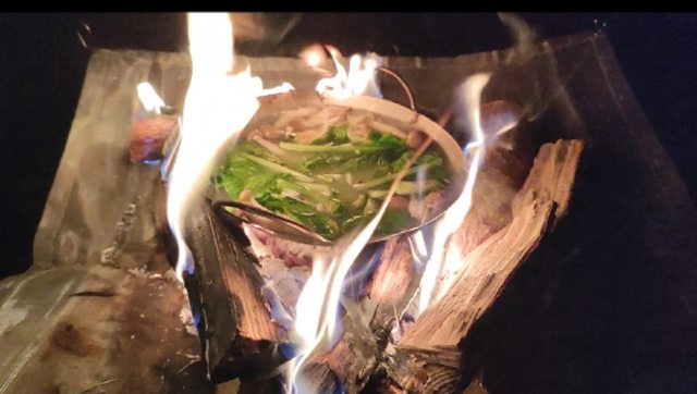 場地真的挺舒服的沒啥人露營,一整籃柴火又便宜,馬上生火吃起火鍋來,晚上冷的時候