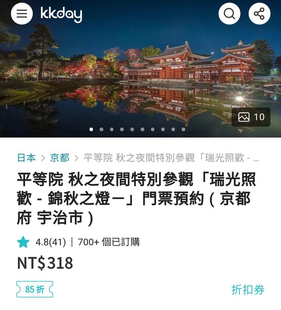 1. 讓售品項: 平等院 秋之夜間特別參觀「瑞光照歡 - 錦秋之燈-」11/30 19:00