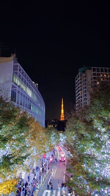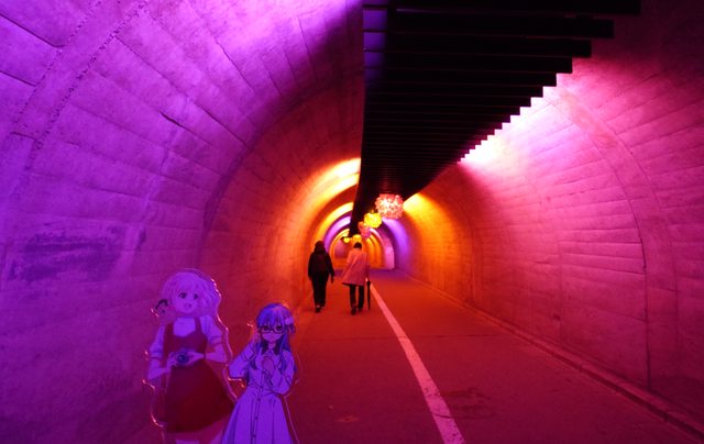 進入袋田瀑布後,路途的燈光秀氣氛很棒