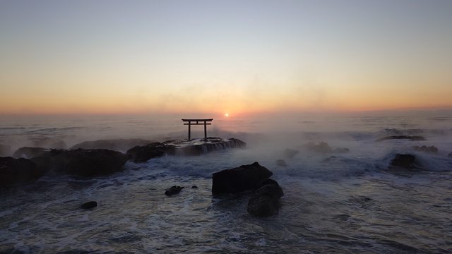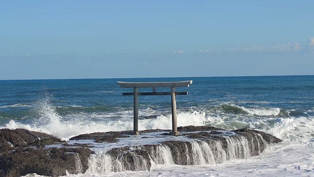 神磯の鳥居->大洗磯前神社->大洗水族館->那珂湊おさかな市場->