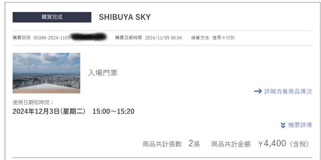 標題[讓售] 12/3 SHIBUYA SKY 15:00 門票兩張