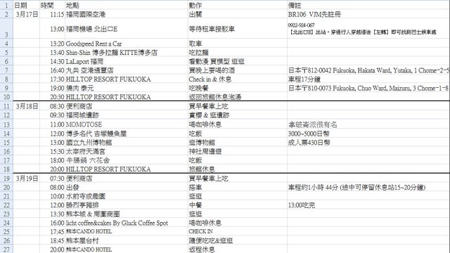 推 Rafallos : 最後一天下午三點一定要出現在福岡進行還車,這行程 12/01 23:02
