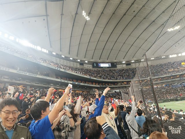 現場滿滿台灣國旗 尤其陳傑憲轟出去的瞬間,彷彿台灣主場,完全瘋掉 雖然怕要趕京城上野23:00末班會來不及,但是三小時多 不但讓我見證台灣奪冠的榮耀 也讓我們完全充足時間趕回京城上野站的末班車 --