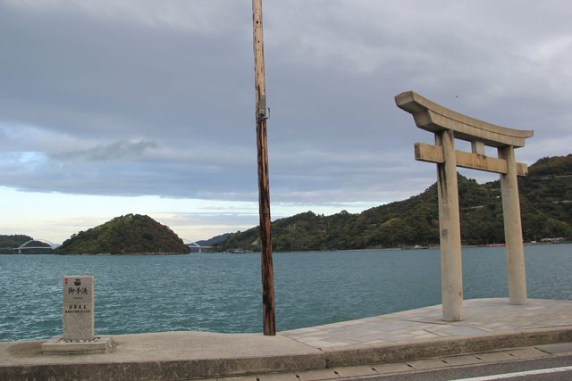 穿越注連繩,過兩座橋抵達礒宮八幡神社鳥居前那一側