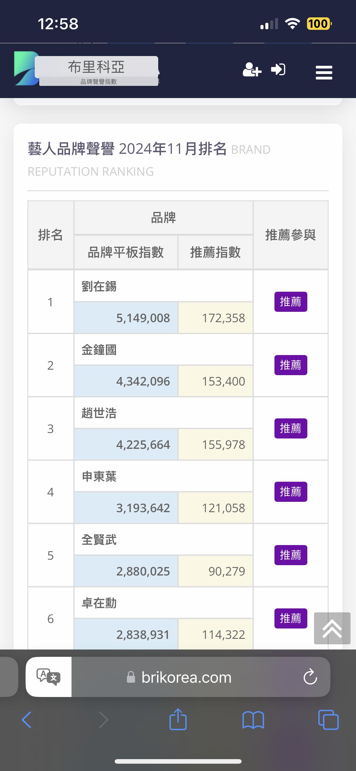 推 wu21607 : 綜藝人品牌評價每月都有 劉金長年在榜 可能因這次6 11/25 13:11